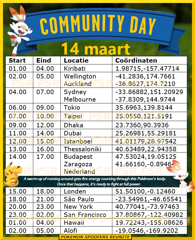 Tussen 14.00 uur en 17.00 uur lokale tijd kunnen we deze Pokémon veelvuldig gaan vangen. Scorbunny komt dan voor het eerst Shiny in Pokémon GO en als je geluk hebt kan deze ook een Special Background hebben.