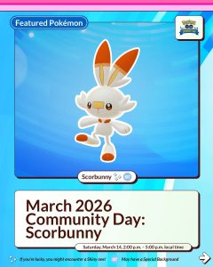 Op zaterdag 14 maart is het weer tijd voor een Community Day en dit keer staat Scorbunny centraal.