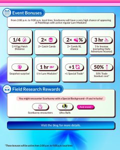 - De Field Research taken zijn aangepast op het event. Scorbunny kan uit de opdrachten een Special Background hebben.