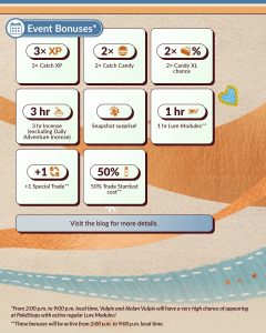 Van 14.00 uur tot 21.00 uur lokale tijd, is er een hele grote kans dat Vulpix en Alolan Vulpix bij een PokéStop met actieve normale Lure Module zullen verschijnen. Deze Vulpix en Alolan Vulpix hebben na de eventtijden nog steeds een verhoogde Shiny kans en kunnen een speciale achtergrond hebben.