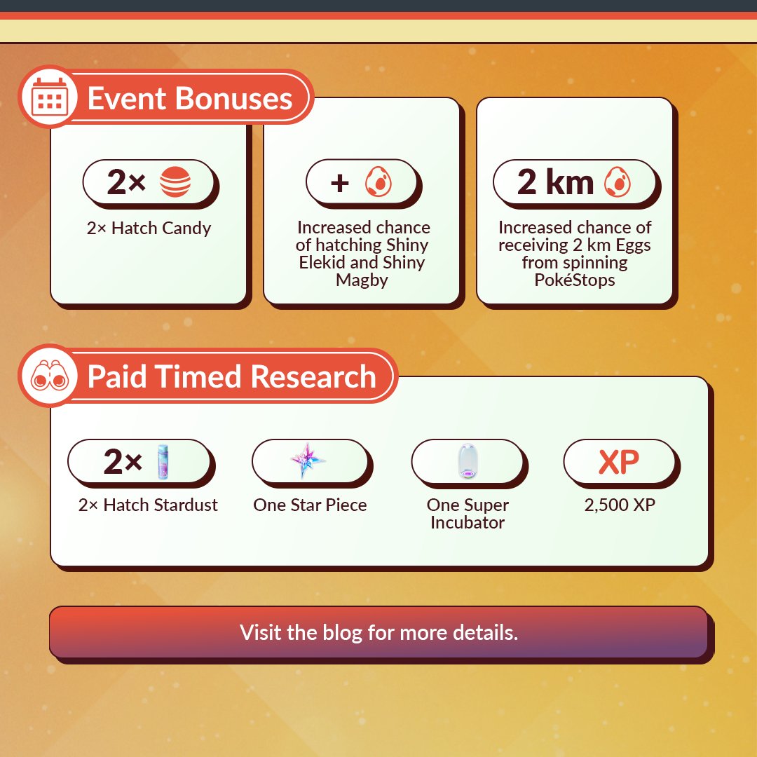 - Verhoogde Shiny kans om een Magby of Elekid te krijgen;