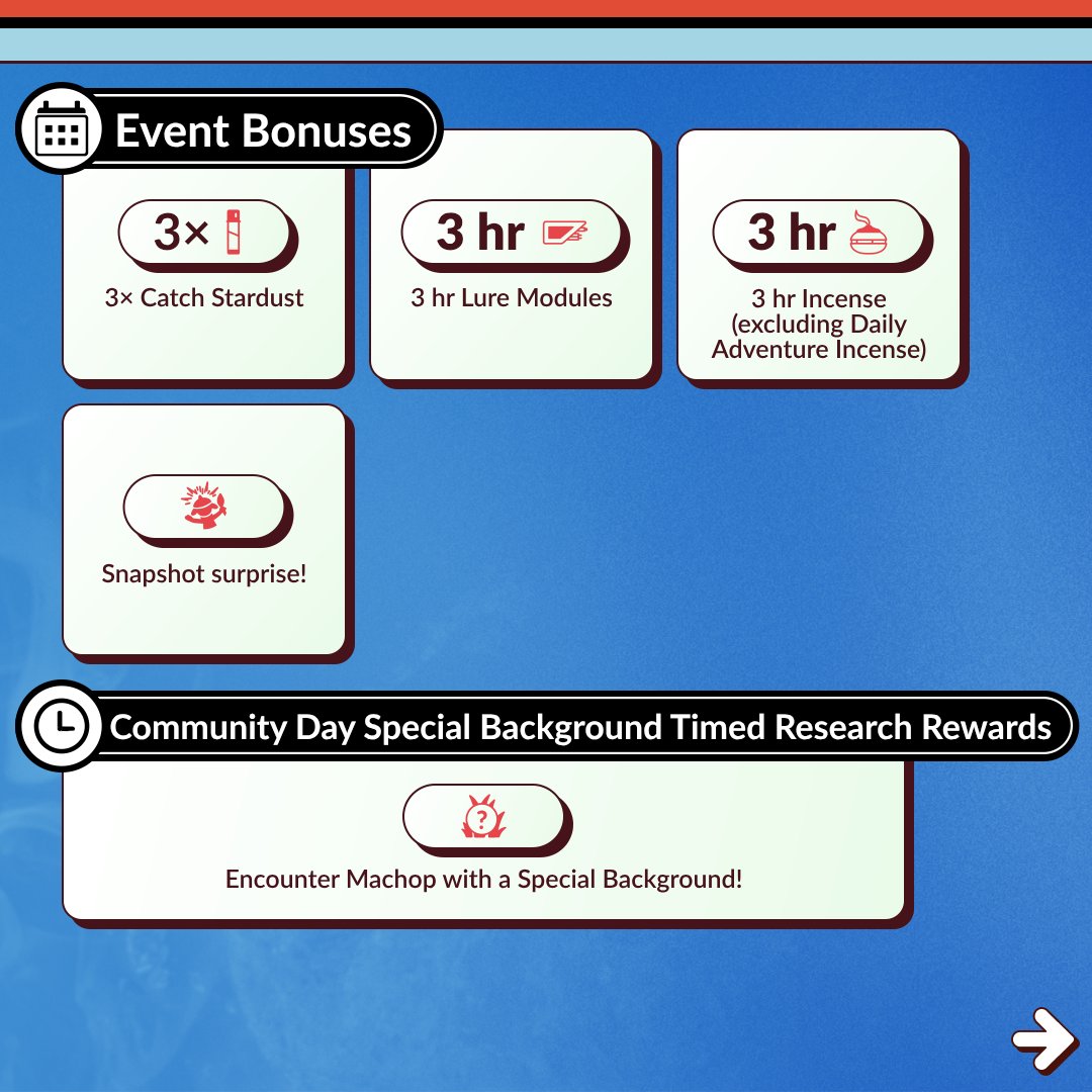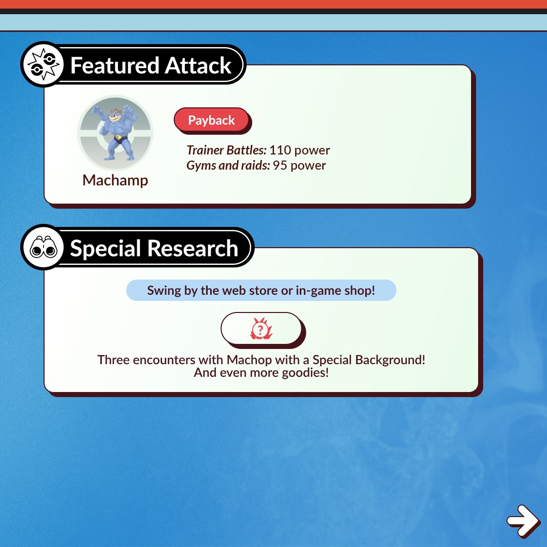 Met het Community Day Classic event krijg je ook een Timed Research. Met deze research kun je de aankomende dagen Machop met de Special Background vrijspelen. Het is wel een research die dagelijks aandacht nodig heeft.