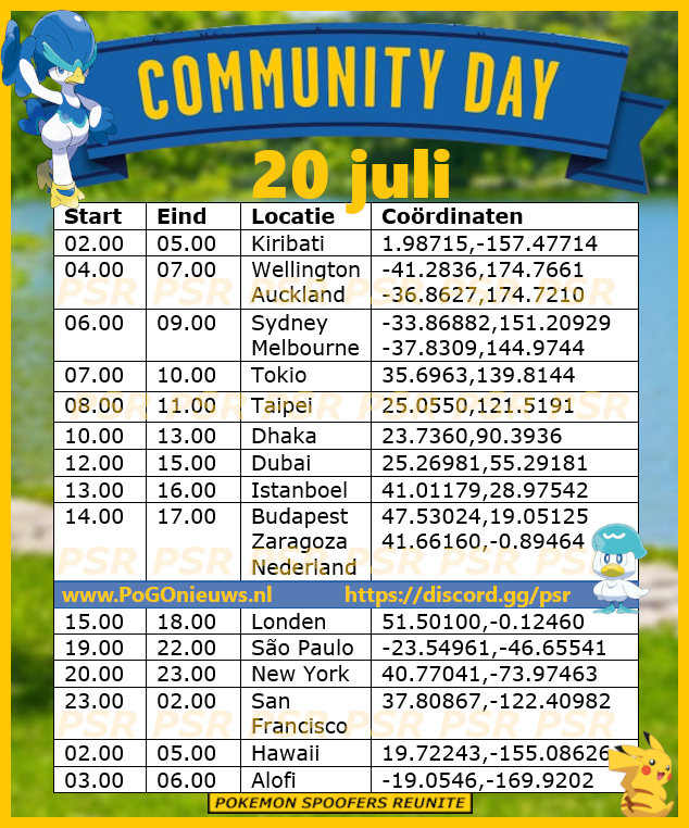 Op zondag 20 juli is er weer een Community Day en dit keer staat Quaxly in de schijnwerpers. Dit vrolijke eendje kunnen we voor het eerst in zijn Shiny vorm treffen. Dit event zal om 14.00 uur lokale starten en eindigen om 17.00 uur lokale tijd.