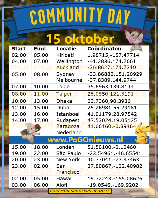 Op 15 oktober van 14.00 uur tot 17.00 uur lokale tijd krijgen we een Community Day waarin Timburr centraal staat. Deze Pokémon was al Shiny in het spel en voor vele een echte uitdaging. Met dit event kan iedereen een Shiny Timburr scoren. Zoals met elke Community Day zal de kans op een Shiny Timburr flink verhoogd zijn.