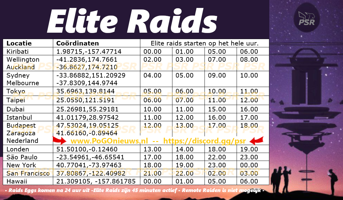 Op zaterdag 29 juni komen er weer Elite Raids in het spel. Dit keer zal Mega Rayquaza in deze raids te vinden zijn. De raidbaas zal 45 minuten aanwezig zijn voor een raid en op vier verschillende uren zullen er Elite Raids starten. Helaas kun je Elite Raids niet op afstand met een Remote Pass doen.