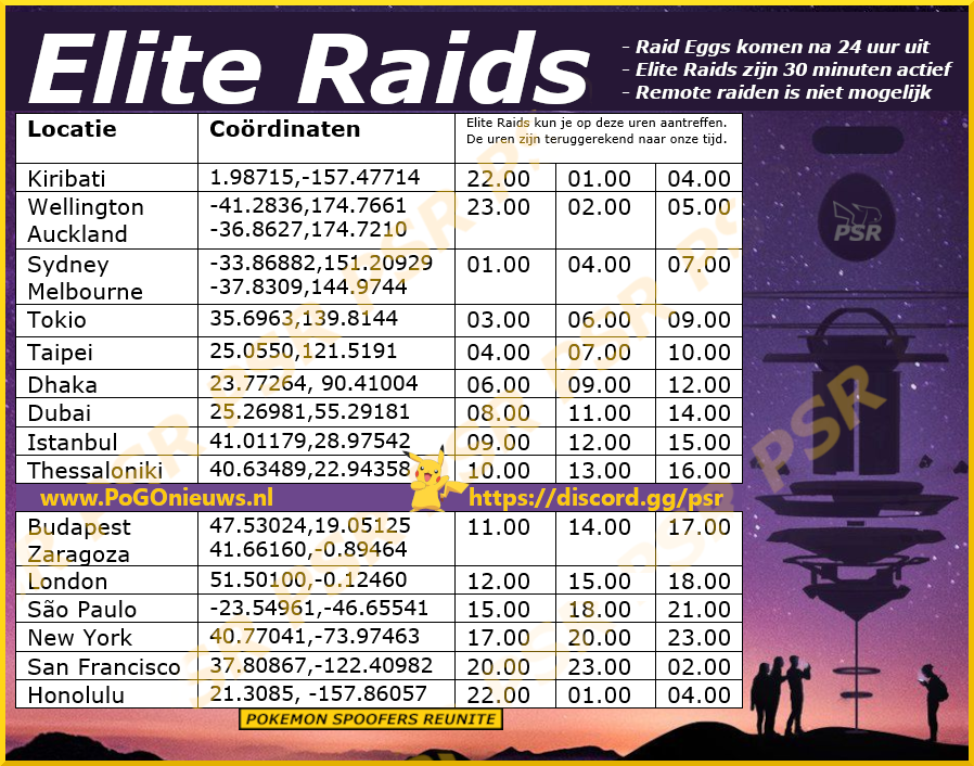 - Elite Raids eieren verschijnen 24 uur voordat het ei uitkomt;