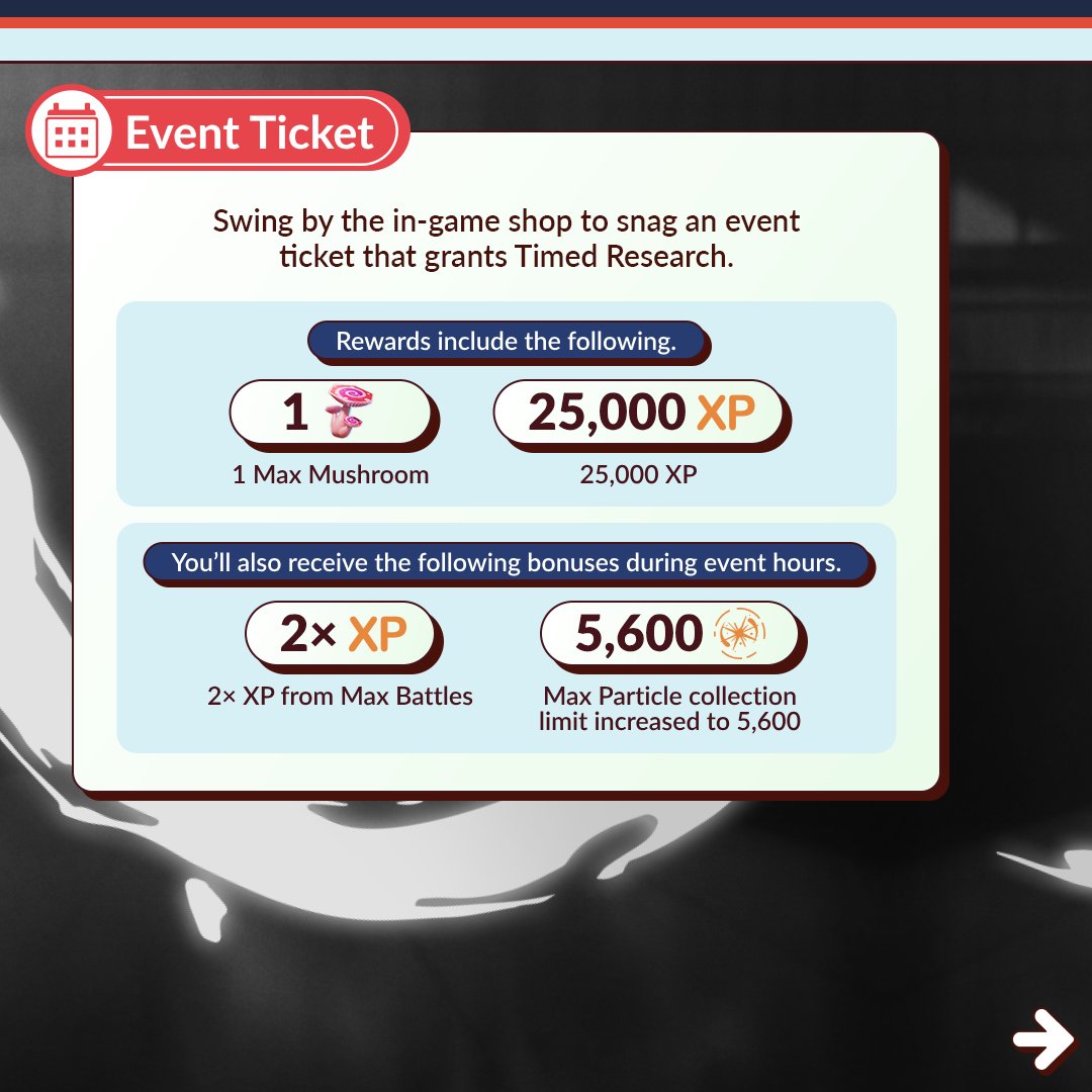 Voor dit event kun je een ticket voor een Timed Research aanschaffen. Deze research geeft de volgende items en bonussen: