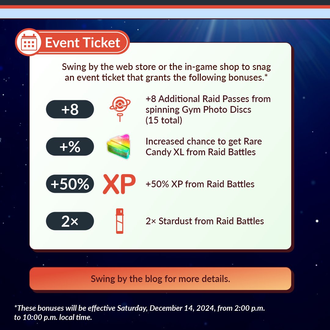 - 8 extra raidpassen boven op de 5 gratis raidpassen;