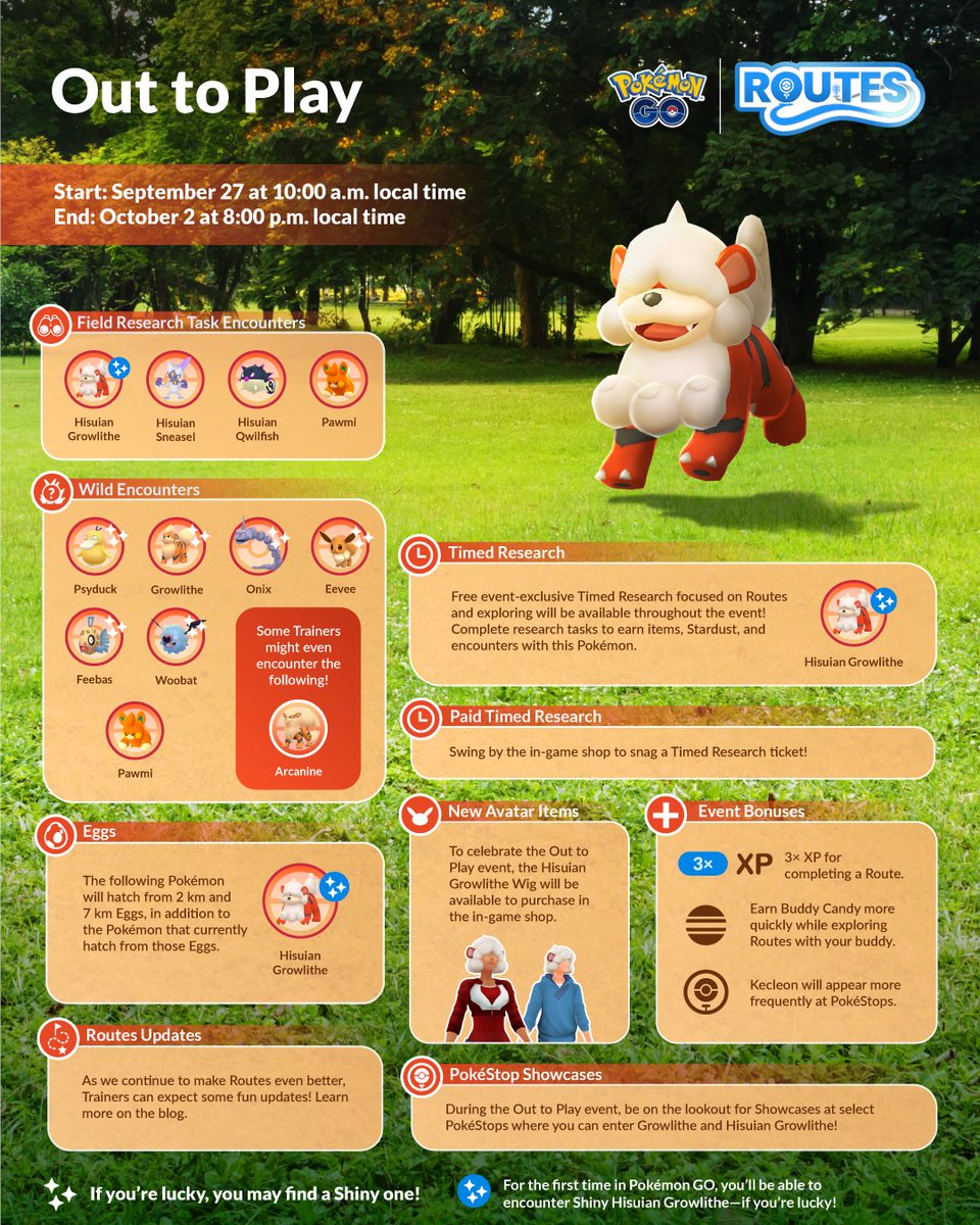 Er zal een gratis Timed Research beschikbaar zijn die gefocust is op routes en ontdekken. Als je de taken afrond, maak je kans op items, Stardust en Hisuian Growlithe die voor het eerst Shiny kan zijn.