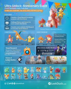 De Pokémon Unown E zal als bonus tijdens het Anniversary Event in raids plaatsnemen. De verwachting is dat dit 1 ster raids zullen zijn. Unown E zal Shiny te vangen zijn.