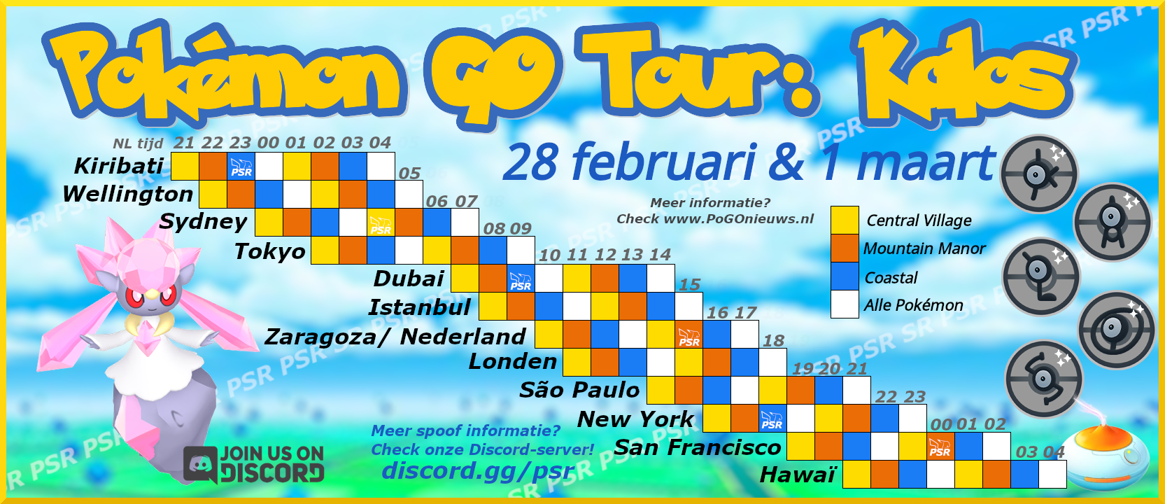 Zoals gewoonlijk hebben we met de GO Tour weer verschillende leefomgevingen die per uur wisselen. Dit keer hebben we 3 verschillende leegomgevingen. In elke leefomgeving zijn er andere Pokémon in het wild te vinden.