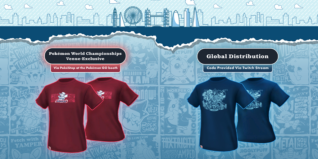 - 2022 Worlds Participant Tee (rode shirt) zal alleen te verkrijgen zijn in London tijdens het event. Dit shirt zal je kunnen ophalen uit een PokéStop bij de Pokémon GO Booth bij het lokale event. Dit kan dus pas vanaf 18 augustus. De coördinaten voor deze PokéStop staan iets hierboven genoemd.