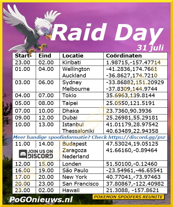 Deze Raid Day zal plaatsvinden op zondag 31 juli van 11.00 uur tot 14.00 uur lokale tijd. Tijdens deze Raid Day staat Hisuian Braviary in het middelpunt en ook is deze Pokémon Shiny te vangen! We zullen de volgende bonussen krijgen: