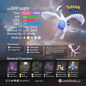 Op 5 april van 18.00 uur tot 19.00 uur lokale tijd is er weer een Raid Hour. Deze keer zal Lugia in de 5 sterren raids aanwezig zijn. Deze Pokémon is Shiny te vangen.