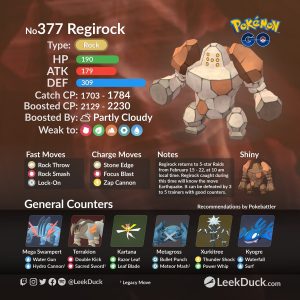 Op 15 februari van 18.00 uur tot 19.00 uur lokale tijd is er weer een Raid Hour. Deze keer zal Regirock in de 5 sterren raids aanwezig zijn. Deze Pokémon is Shiny te vangen.