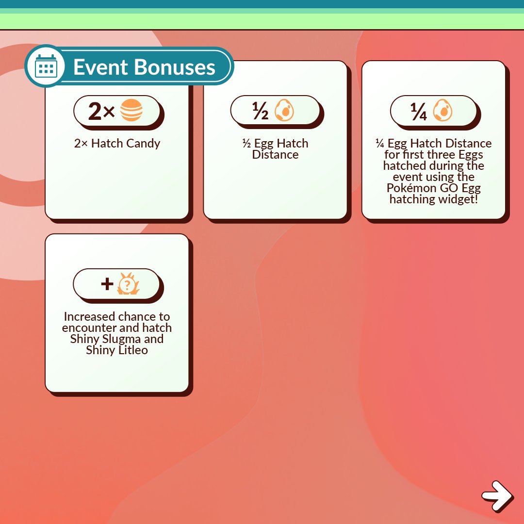 - Er is een verhoogde kans op een Shiny Slugma en Shiny Litleo.