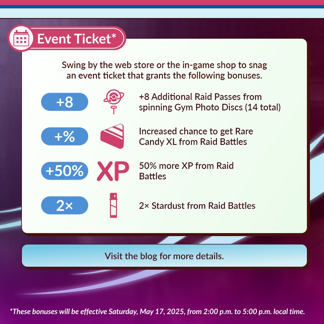 - 5 extra gratis raidpassen wanneer je een gym aantikt. In totaal krijg je op deze dag dus 6 gratis raidpassen;