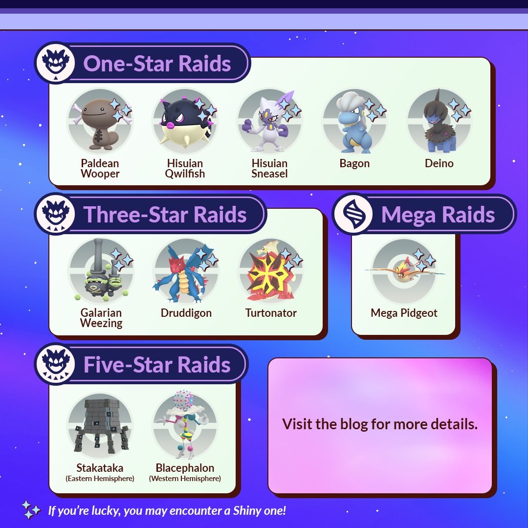 - 5 sterren raids: Stakataka en Blacephalon. De Pokémon zijn regio gebonden;