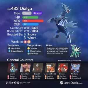 Op 22 juli zal Moltres in de 5 sterren raids plaatsmaken voor Dialga. Dialga is Shiny te vangen. De wisseling zal om 10.00 uur lokale tijd plaatsvinden. Dat betekent dat je Dialga op 21 juli om 23.00 uur in Kiribati tegen kan komen in de raids.