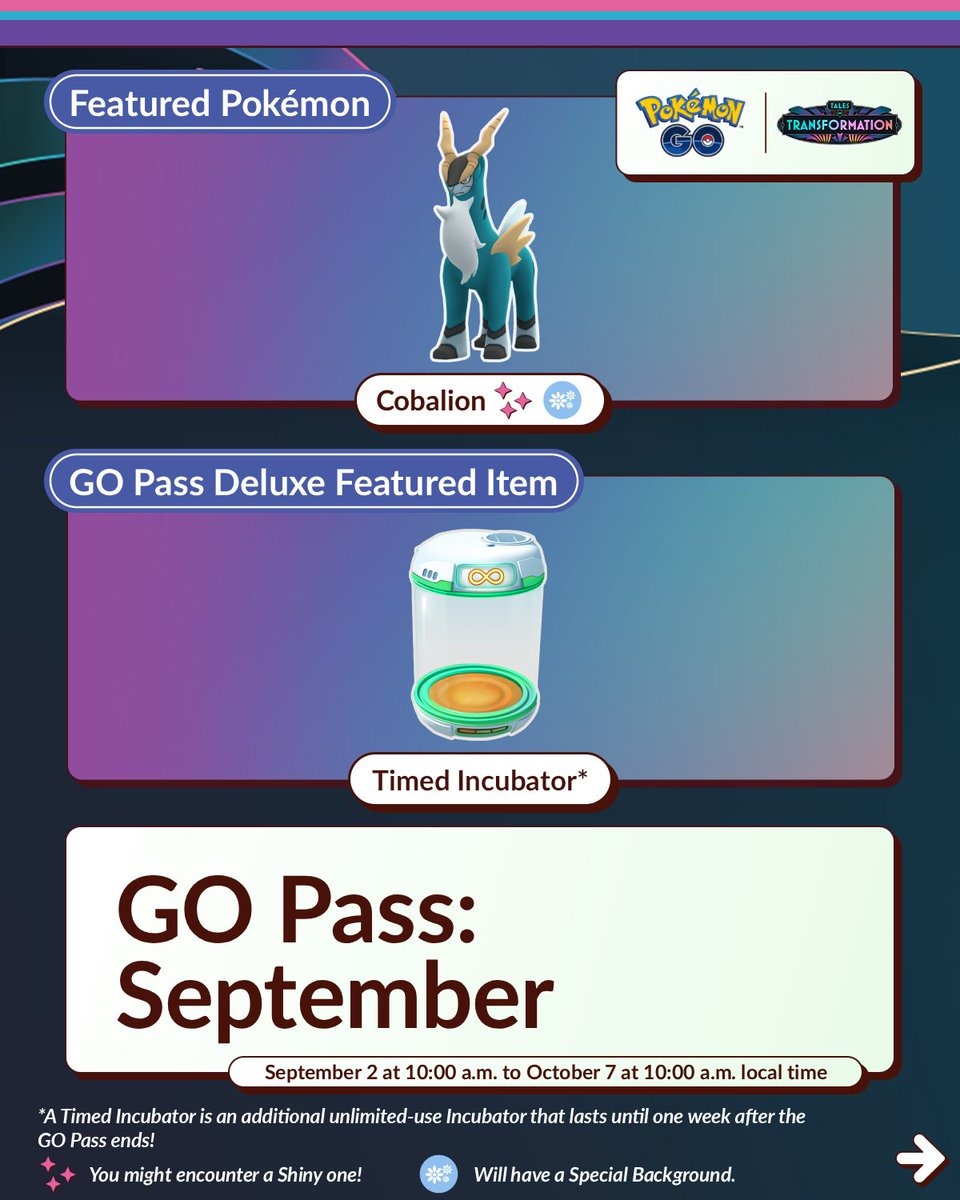 Met deze GO Pass komt er ook een nieuw item in het spel namelijk de Timed Incubator. Deze Incubator kun je vrijspelen bij rank 20 als je de GO Pass Deluxe hebt. Deze Incubator kun je blijven gebruiken, maar zal weer uit je Item Bag verdwijnen als de GO Pass verloopt. Je kunt hem dus tot 14 oktober gebruiken! Als je nog een ei in de Incubator hebt zitten en de Incubator verloopt, dan zal dit ei in een Incubator voor 1 maal gebruik geplaatst worden.