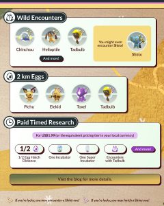 • Verhoogde kans op een Shiny Tadbulb uit een 2 km ei.