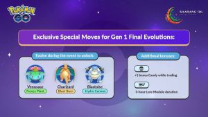– Bij evolueren kunnen Venusaur, Charizard en Blastoise hun Special Moves krijgen: