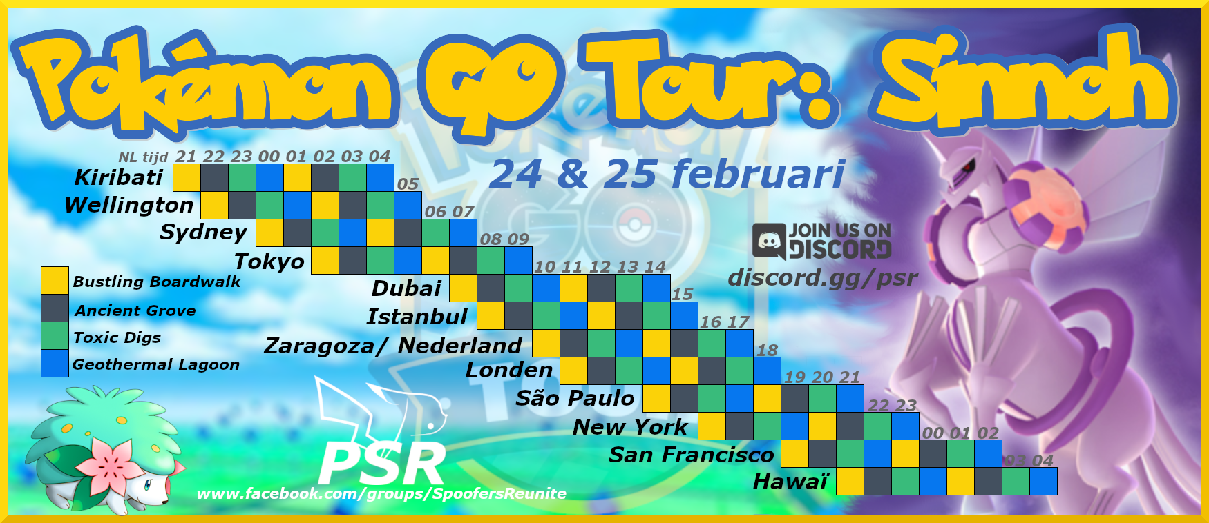 Op 24 en 25 februari 2024 zal het nieuwe GO Tour event plaatsvinden. Het event is actief van 10.00 uur tot 18.00 uur lokale tijd. Met de GO Tour: Sinnoh zal de hele regio Sinnoh Shiny in het spel komen. Het wereldwijde Pokémon GO Tour: Sinnoh event is geen ticket event. Je kunt dus zonder ticket dit event spelen.