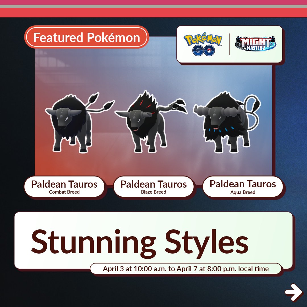 Op donderdag 3 april om 10.00 uur lokale tijd zal er weer een nieuw event starten en dit event staat in het teken van Paldean Tauros en een Special Research ‘A Striking Shadow’ waarmee Marshadow of Marshadow Candy vrij te spelen is. Dit event zal op 7 april om 20.00 uur lokale tijd eindigen.
