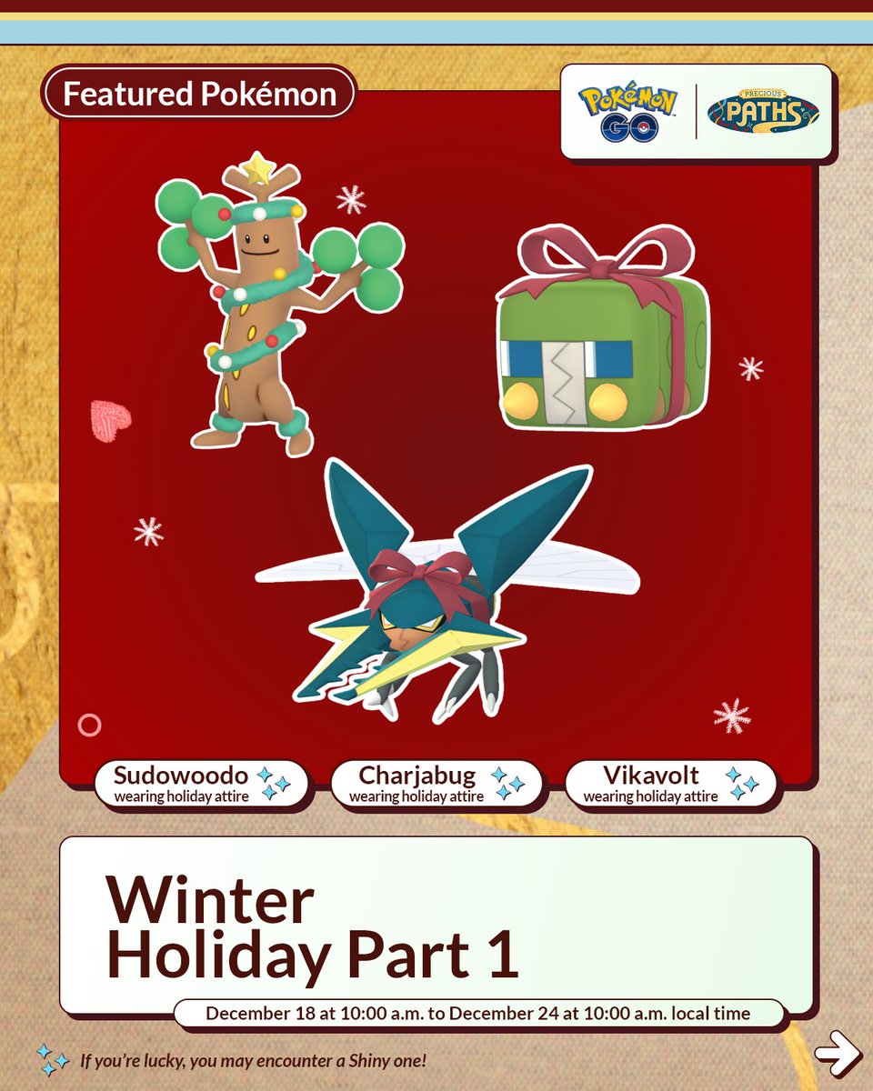 We kijken elk jaar weer uit naar het winter/kerst event. Ook dit jaar belooft het weer een leuk event te worden met nieuwe costume Pokémon.