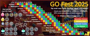 Elke GO Fest hebben we roterende leefomgevingen en dat betekent dat elk uur de Pokémon die in het wild voorkomen verschillen. Vaak is er een thema voor elke leefomgeving. Hieronder kun je zien welk leefomgeving we per welk uur hebben. Dit is voor beide dagen.