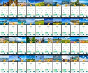 – Er zijn 40 verschillende Pikachu met Location Background te krijgen;