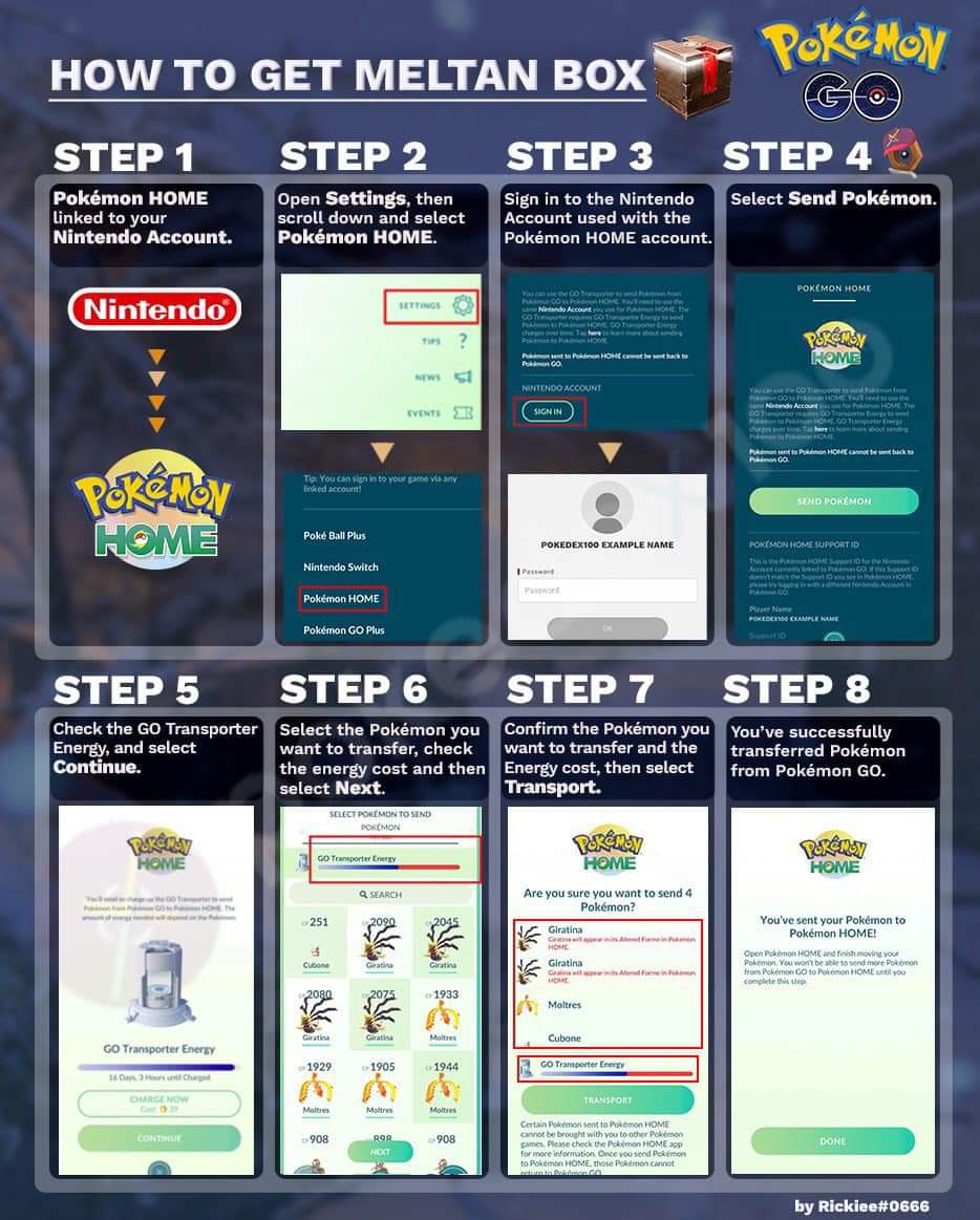 Je kunt op verschillende manieren een Meltan Box op een Pokémon GO account zetten. Je kunt dit via de app Pokémon HOME doen of via de Switch met het spel Let’s GO: Eevee of Let’s GO: Pikachu. Hieronder beschrijven we beide opties.